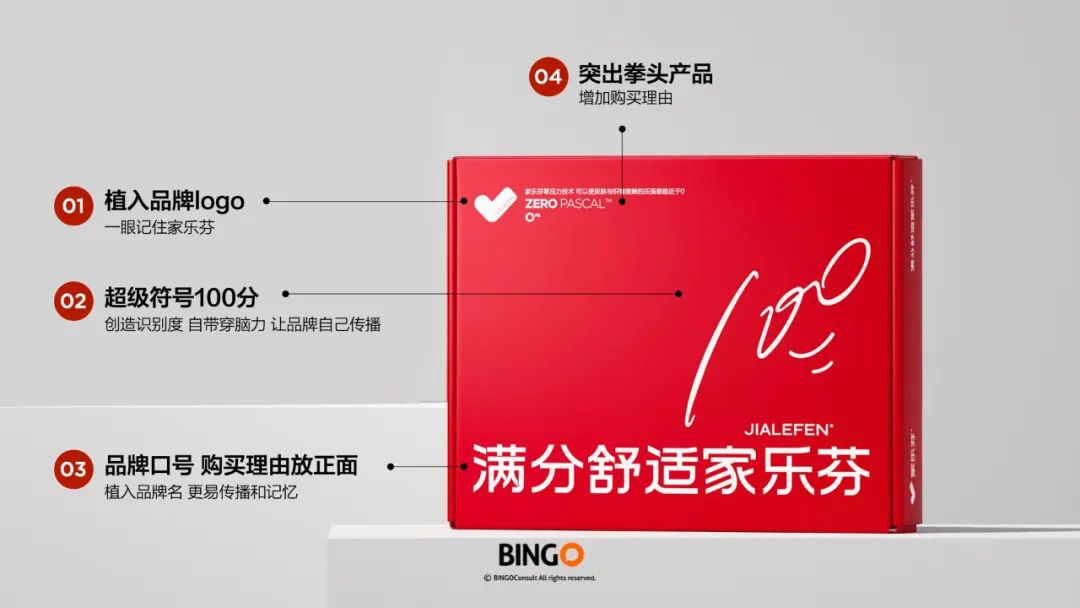 找到考试分数的原型后,下一步就是私有化改造,将对号替代掉原有企业标,传达国民家居服,正确选择的品牌精神;将满分💯作为品牌的超级符号,与战略口号互为所指,彻底降低品牌的识别、记忆与传播成本。