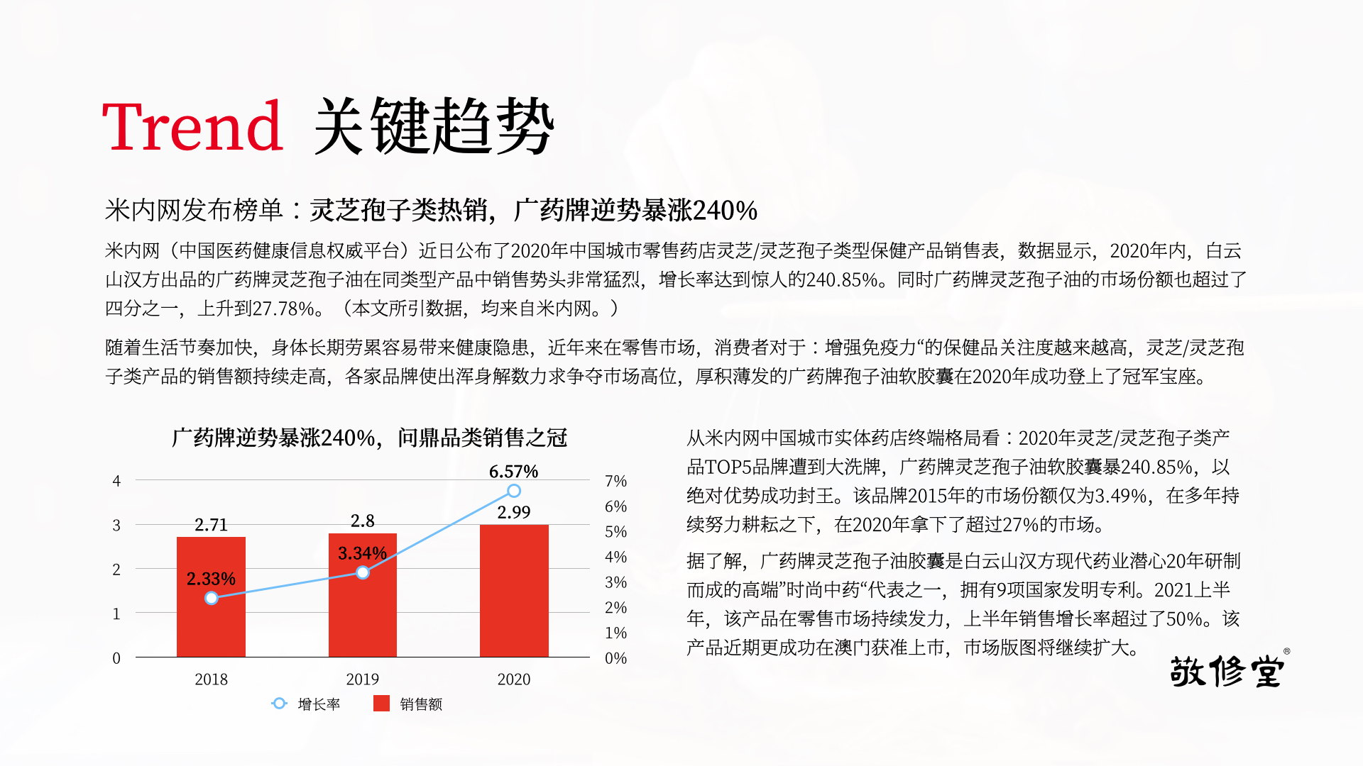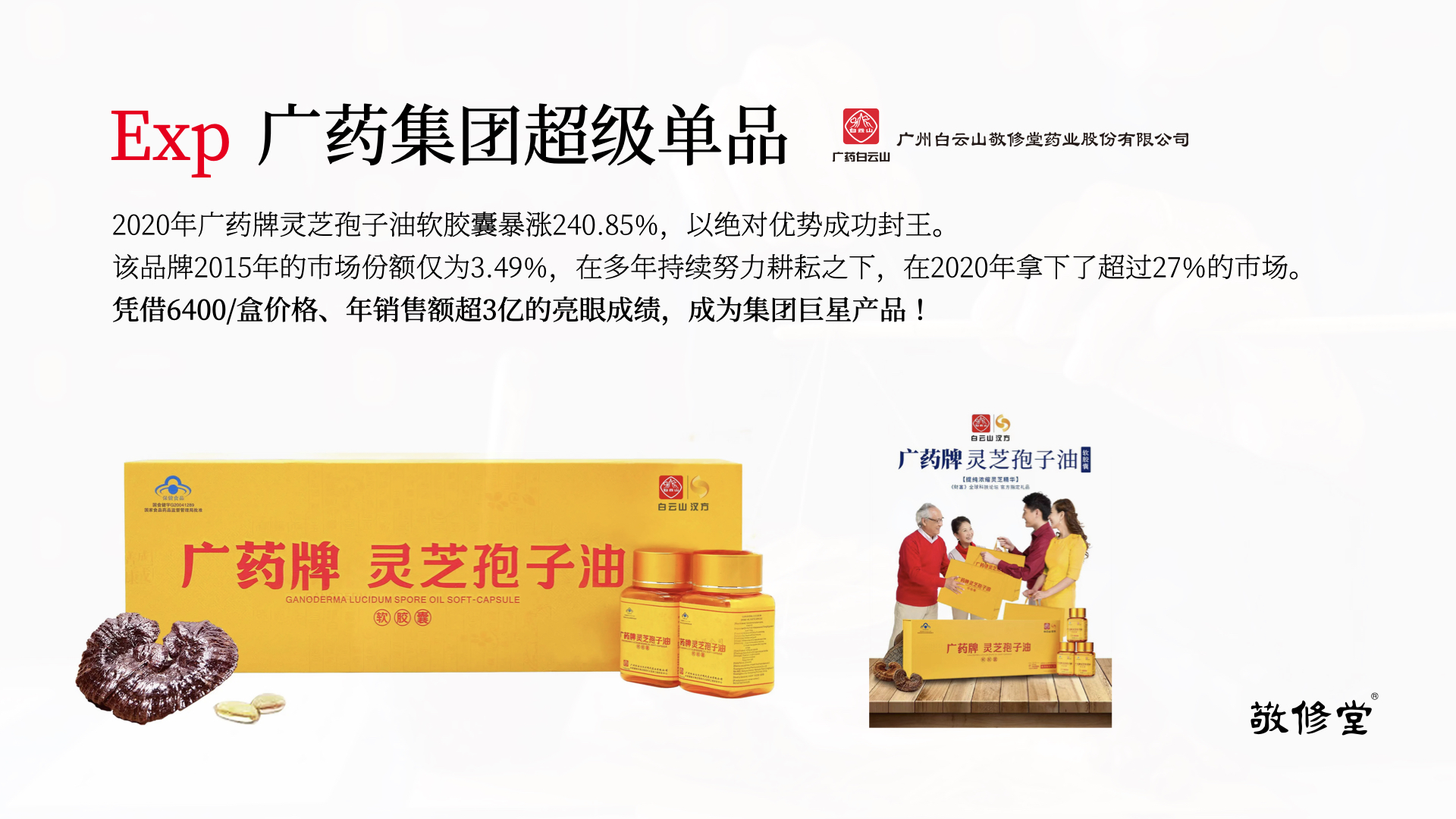 在这一背景下,内观品牌资产,我们发现广药集团超级单品“灵芝孢子油软胶囊”的销量暴涨,成功封王。
