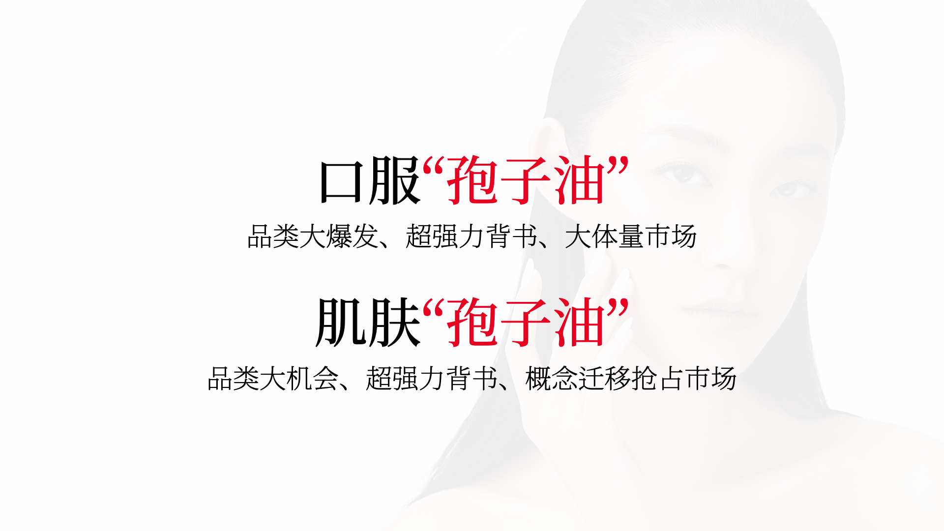 以“口服孢子油”为机会切入点,凭借品牌超强力背书,将概念迁移抢占护肤品市场。