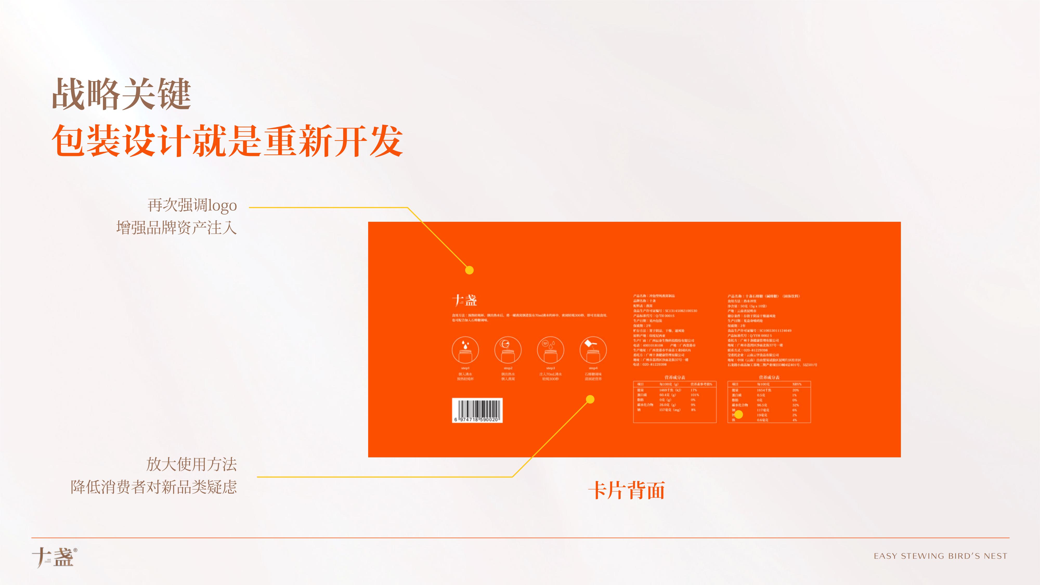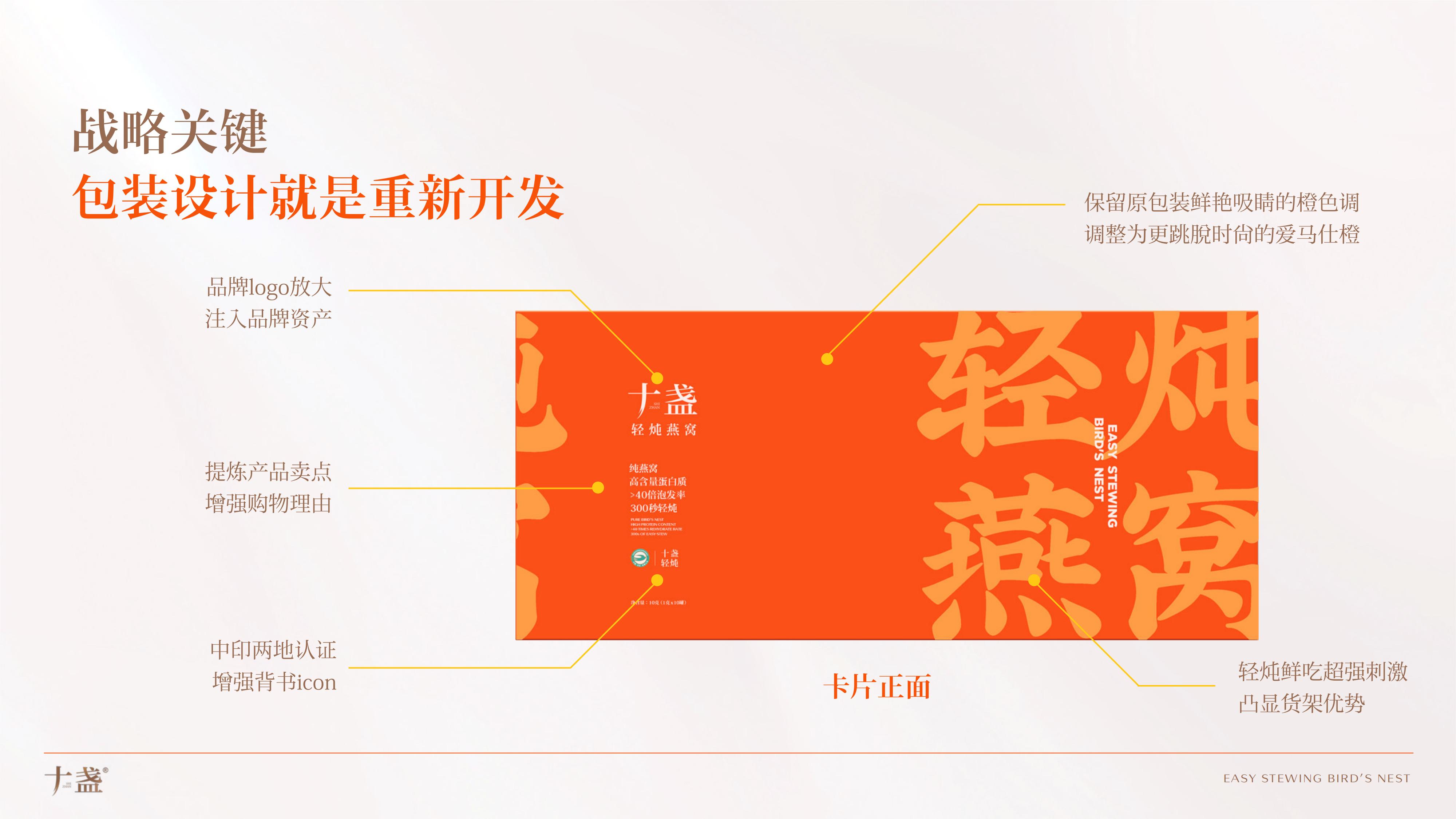 彬果为十盏重新设计产品包装与品牌超级符号,让十盏燕窝从货架上脱颖而出,让产品自己会“开口推销”,大幅度降低传播成本。