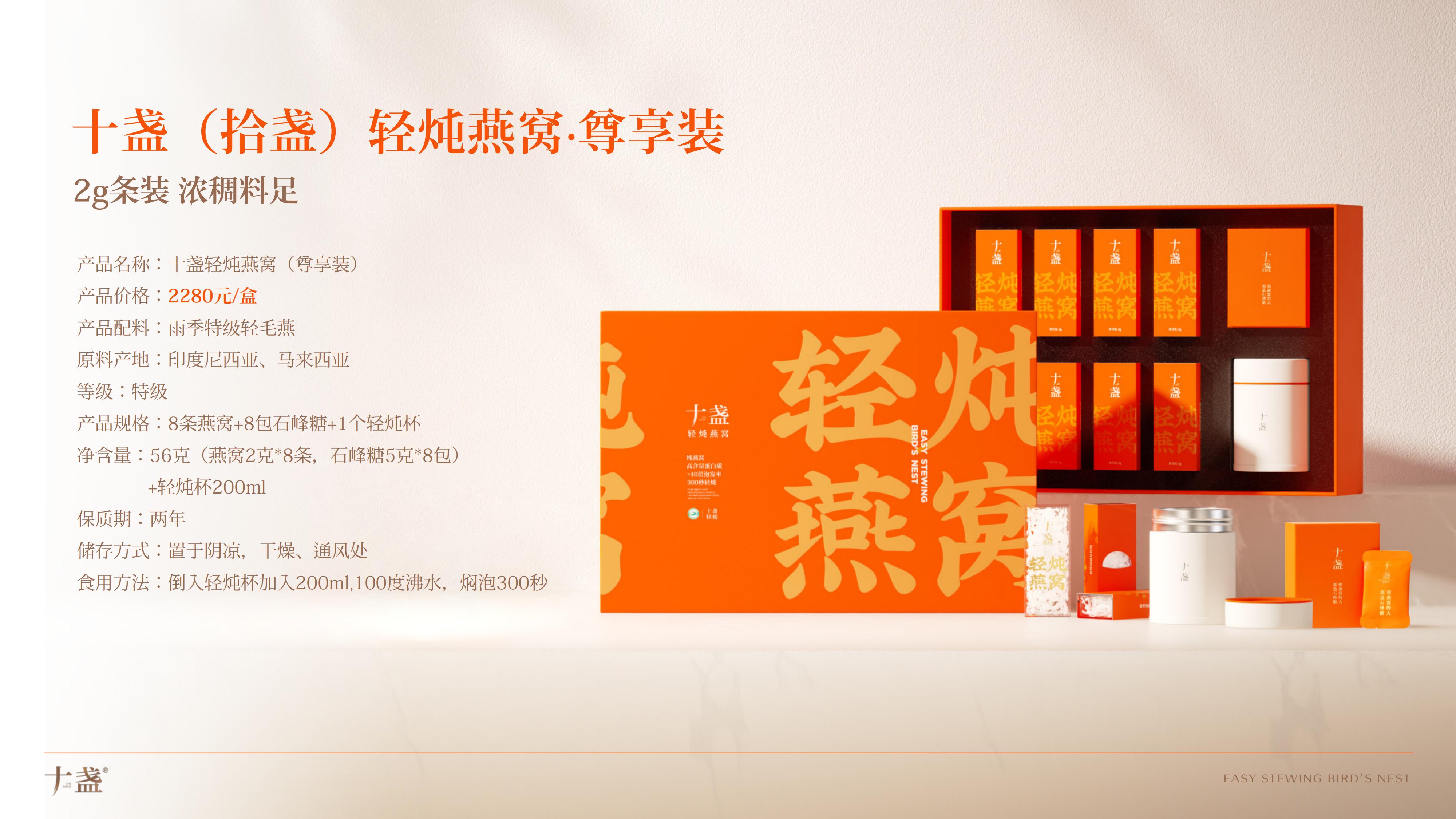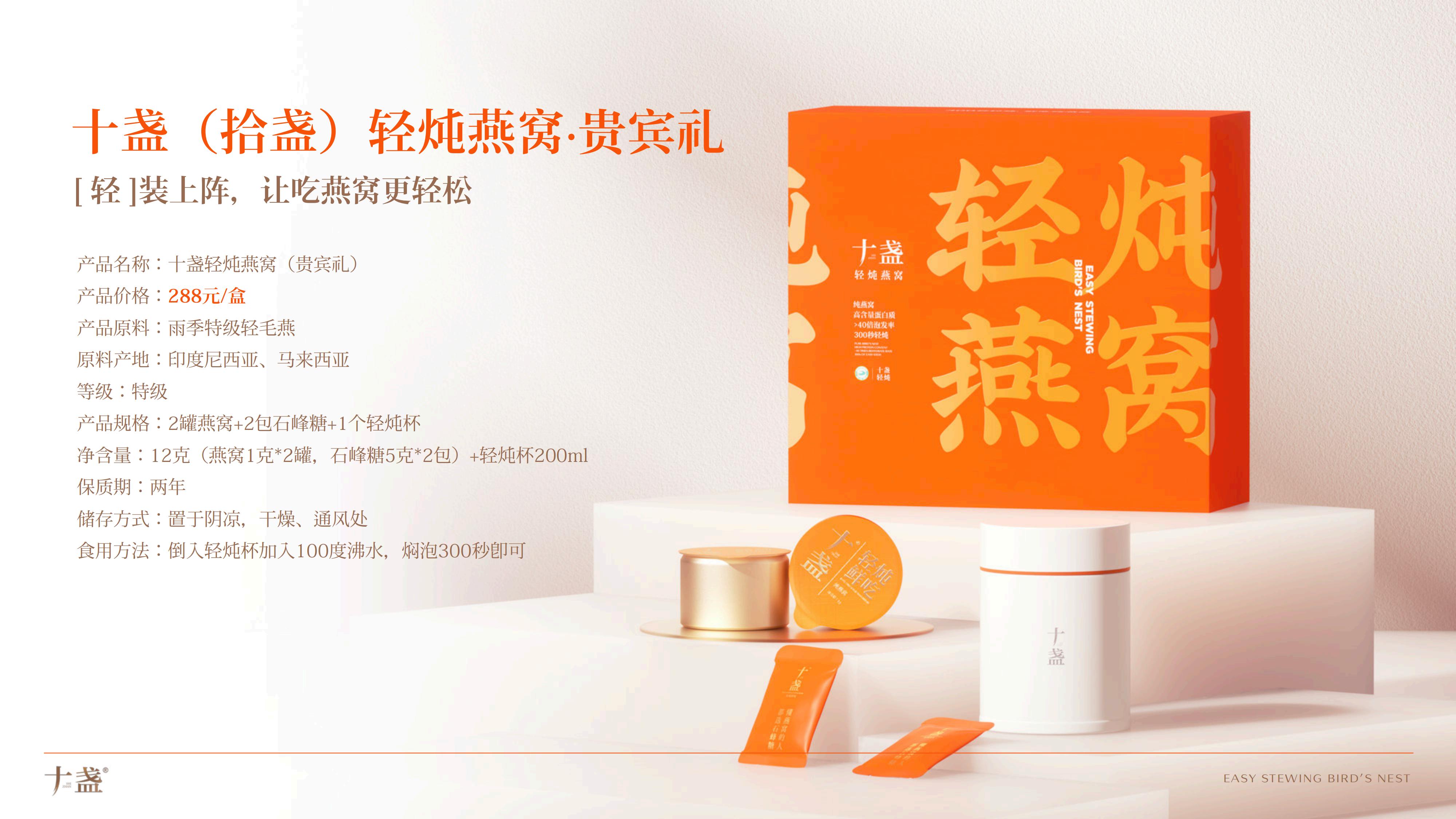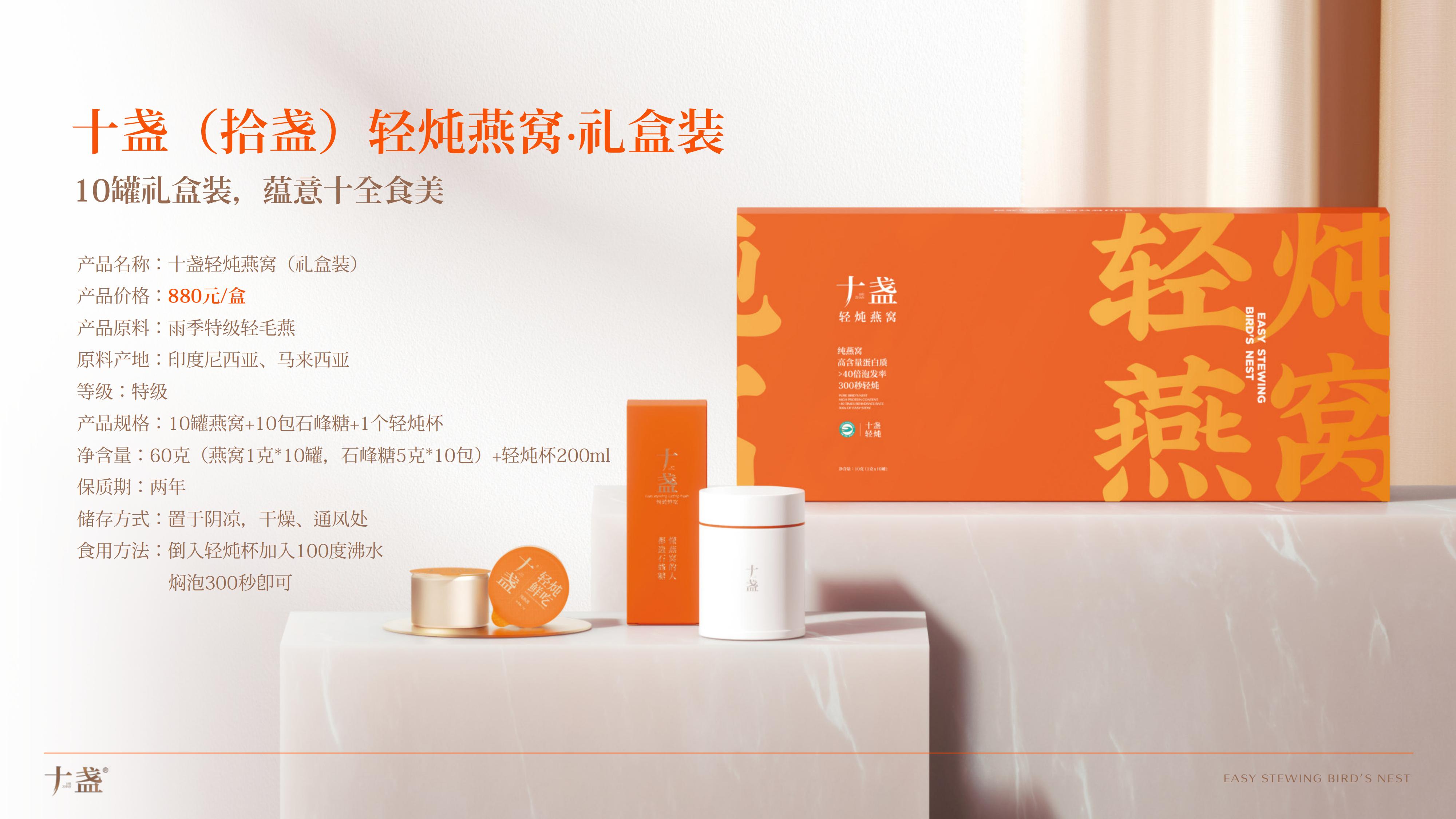十盏精选印尼、马来西亚溯源燕窝,通过核心冻干锁鲜技术,提取3克干燕窝的水分和杂质,研发出300秒轻炖鲜吃的轻炖燕窝,还原传统燕窝从泡发、挑毛到炖煮历经8小时繁杂工序的新鲜口感,让消费者随时随地轻松吃上鲜燕窝。