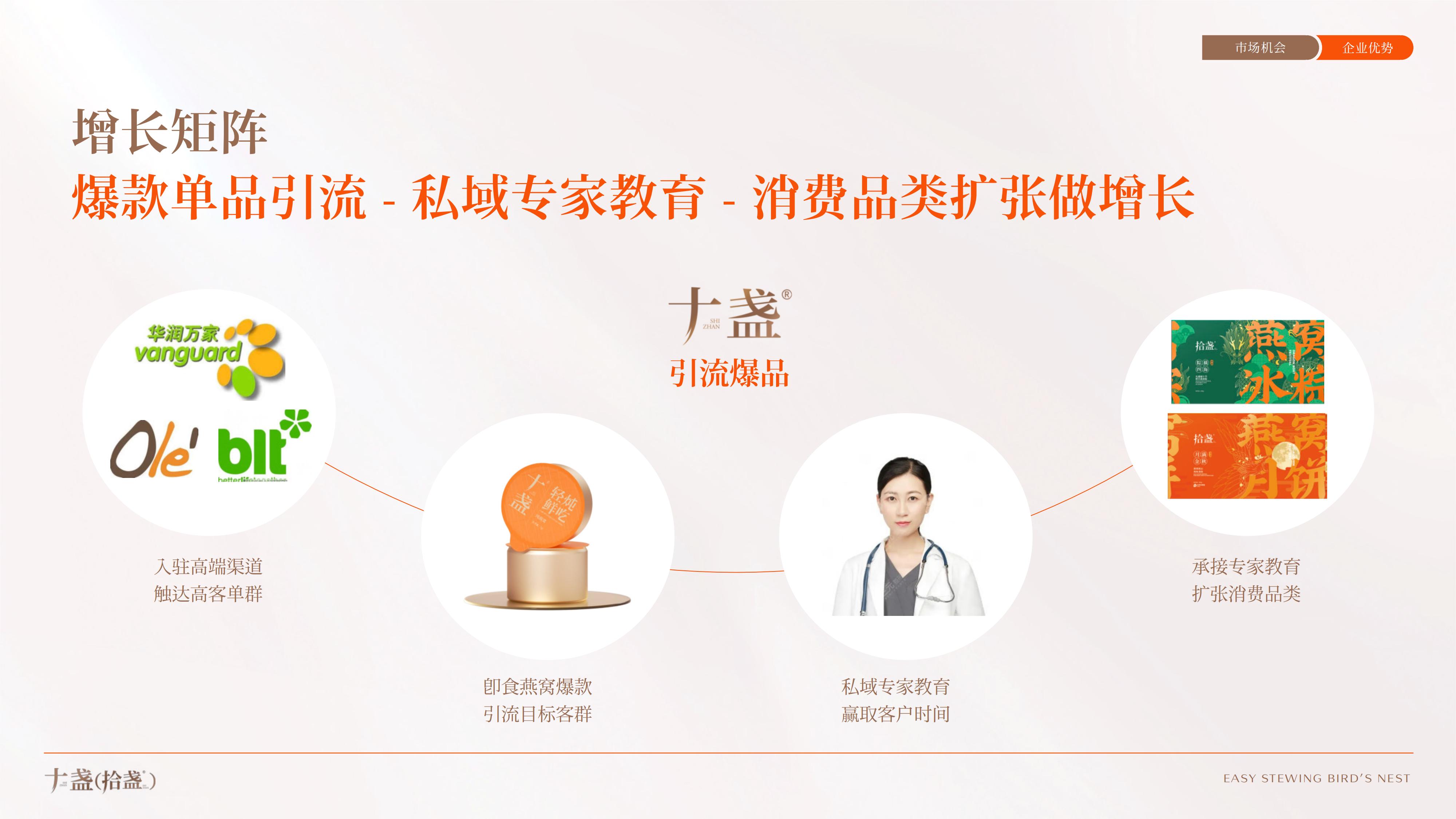 用爆款轻炖燕窝吸引目标客群进入私域,再通过私域专家教育后以关联产品承接,以此扩张消费品完成品牌增长链。
