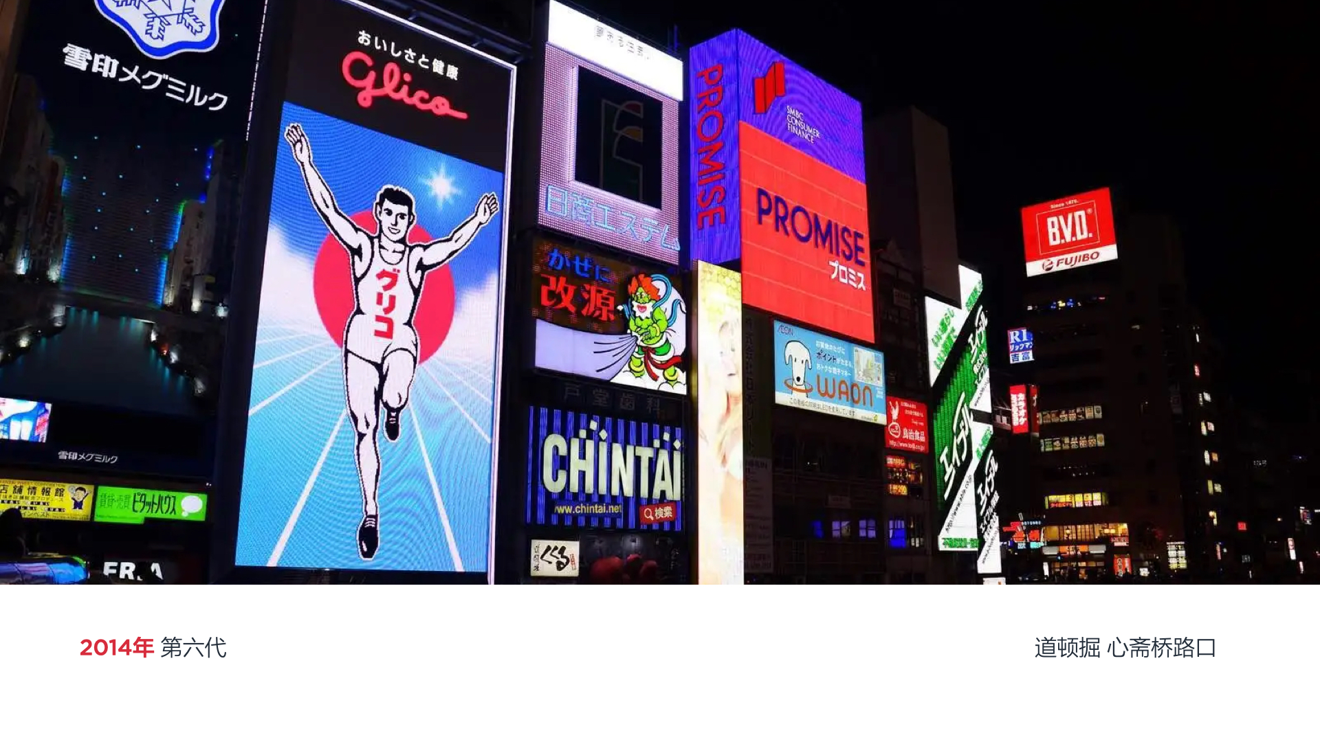 2003年,该广告牌被认定为《大阪市指定景观形成物》,可以说是这个城市的代名词。一定会有人和你说:来大阪,一定要去新斋桥打卡这个广告牌。