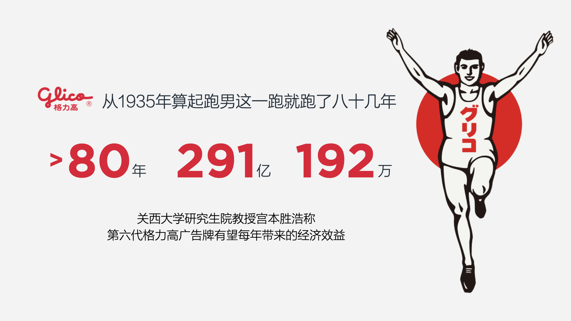 算起来,自1935年起,跑男一跑就跑了80多年,逐渐成为格力高的品牌符号,关西大学研究生院教授宫本胜浩称“第六代格力高广告牌”有望每年带来的经济效益大约在291亿日元。除此之外,跑男广告效应一直延伸并赋能到店铺与各种场景。