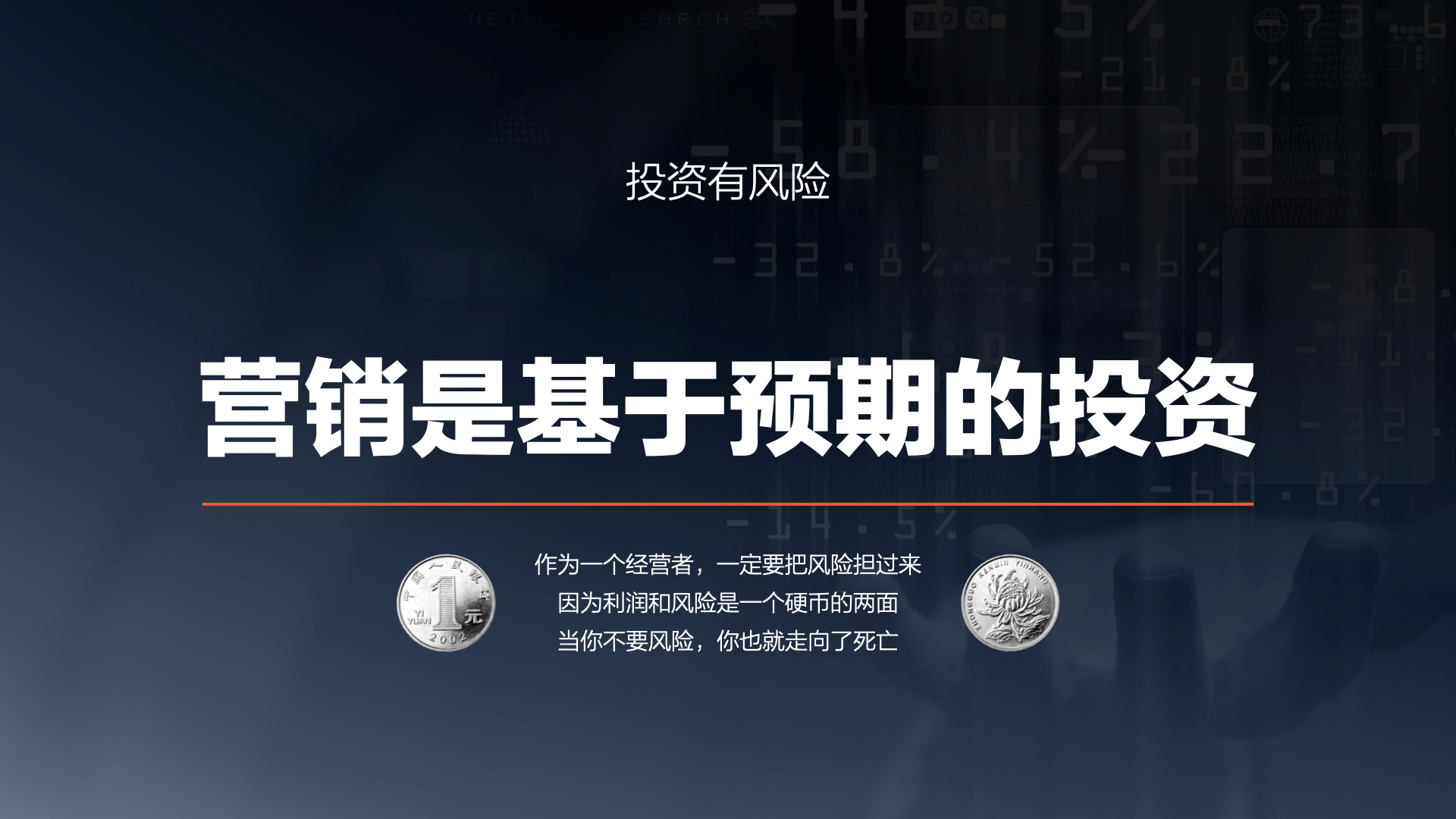 利润跟风险如同一个硬币的两面,作为一个经营者,要学会把风险担过来,如果你只选择了我们所说的精准流量,就相当于把企业经营的命脉交了出去。