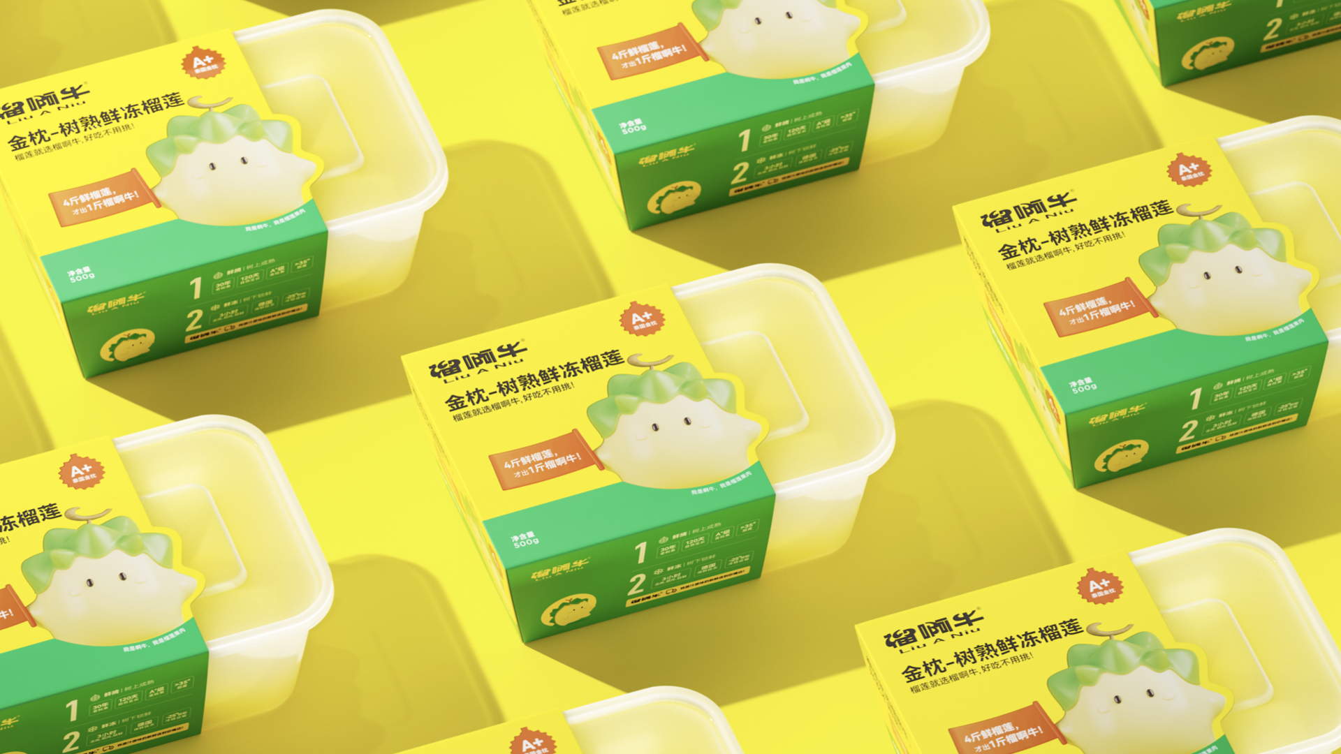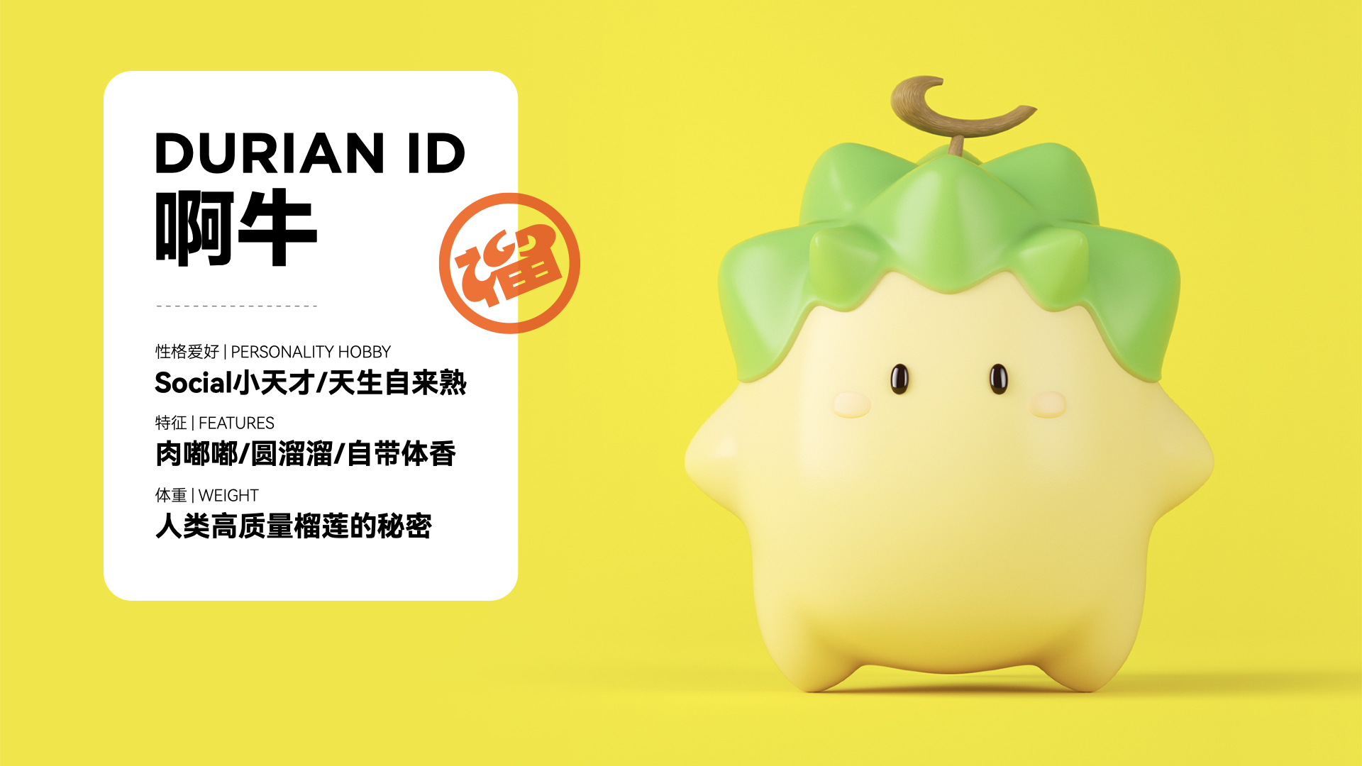 将榴莲果肉拟人化传达品类价值,实现超级符号与品牌名互为所指,彻底降低品牌的识别、记忆与传播成本