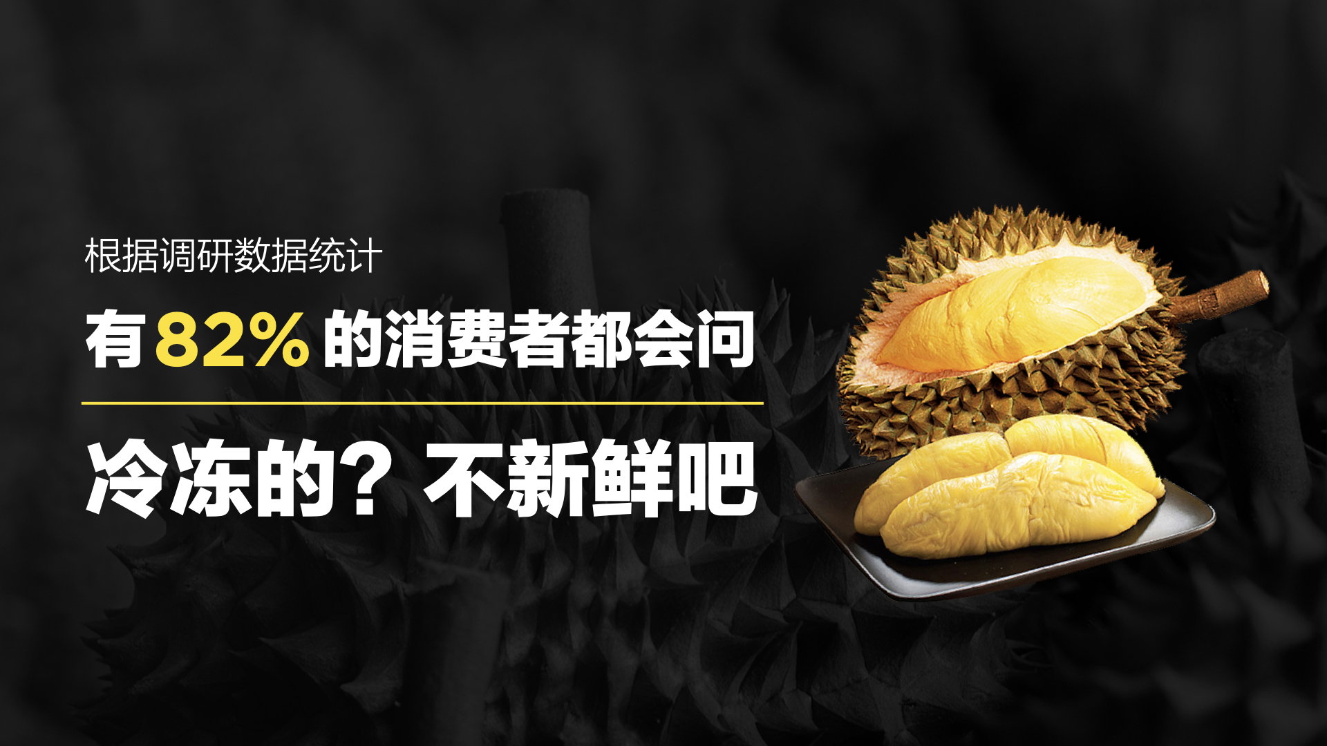 包括品牌方在车架上主打的也是冷冻榴莲,那就是它的品类,“冷冻的=不新鲜的”成为了消费者的天然联想。