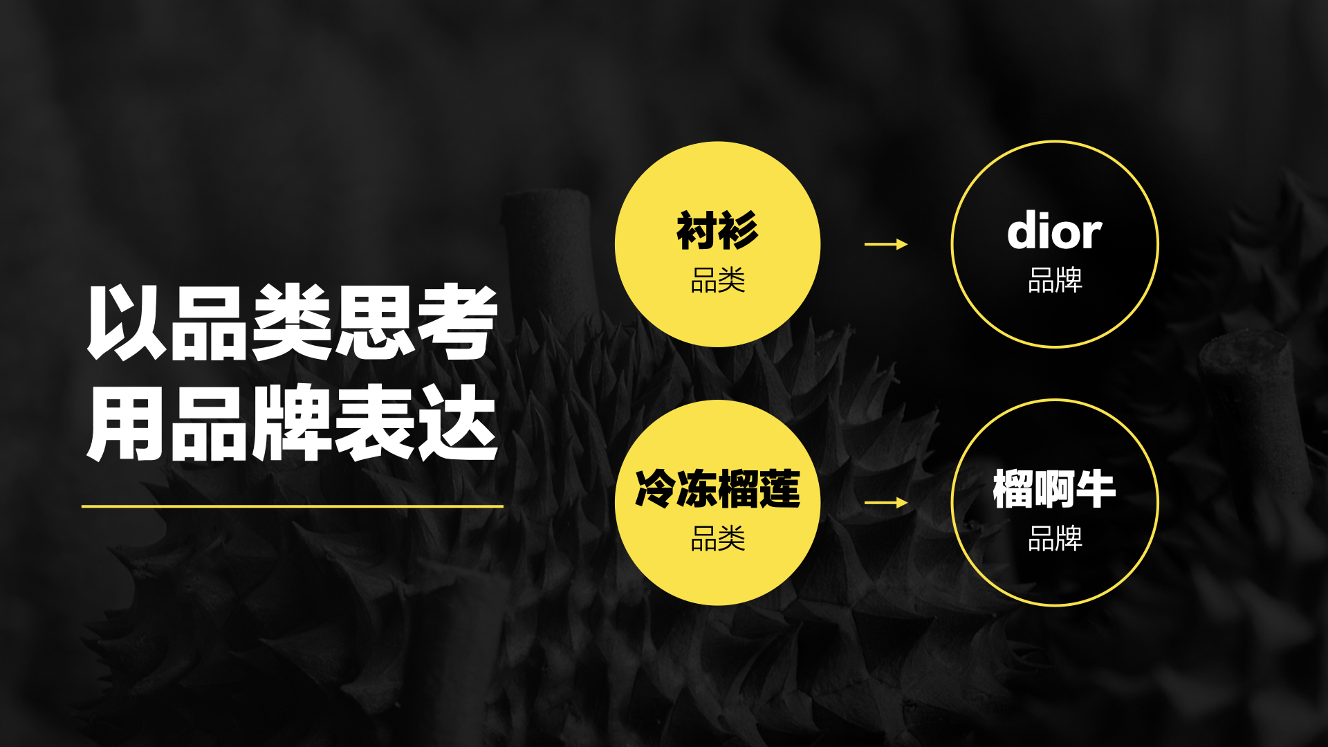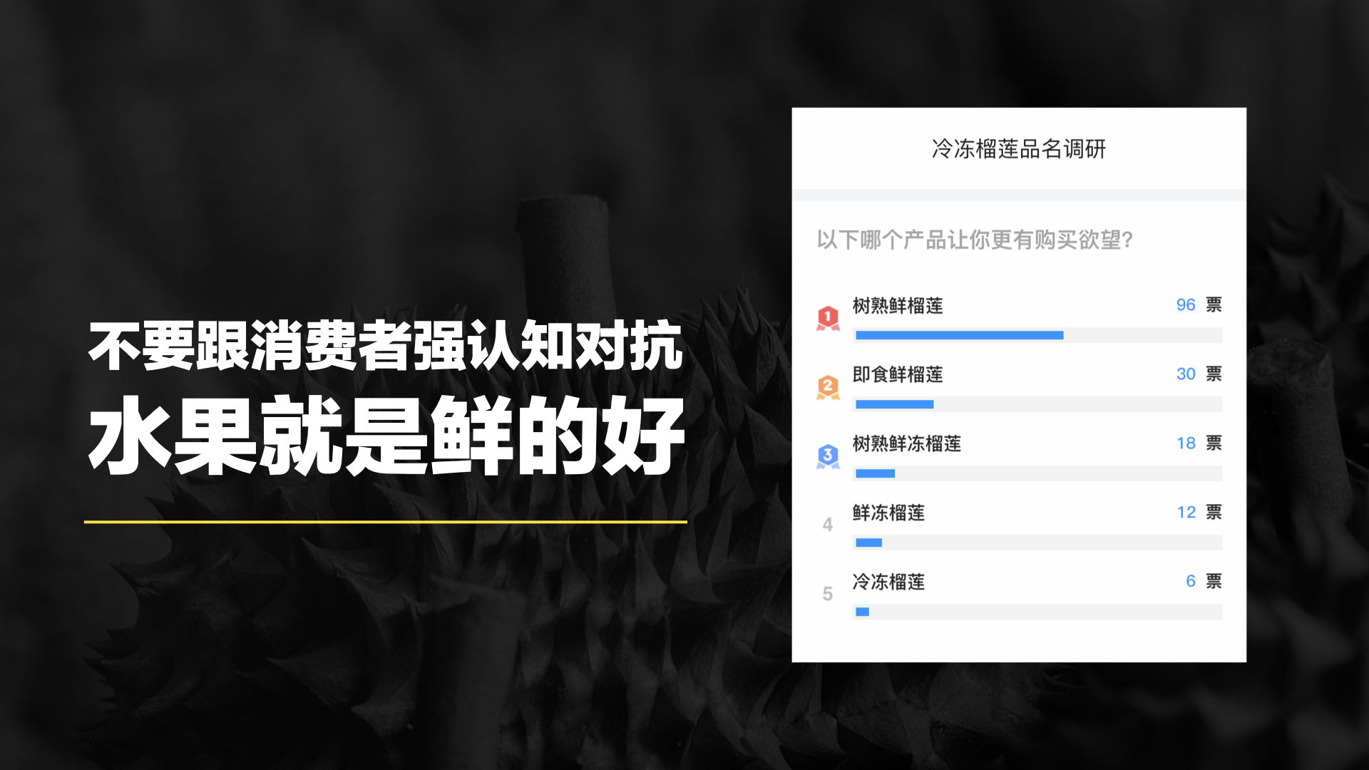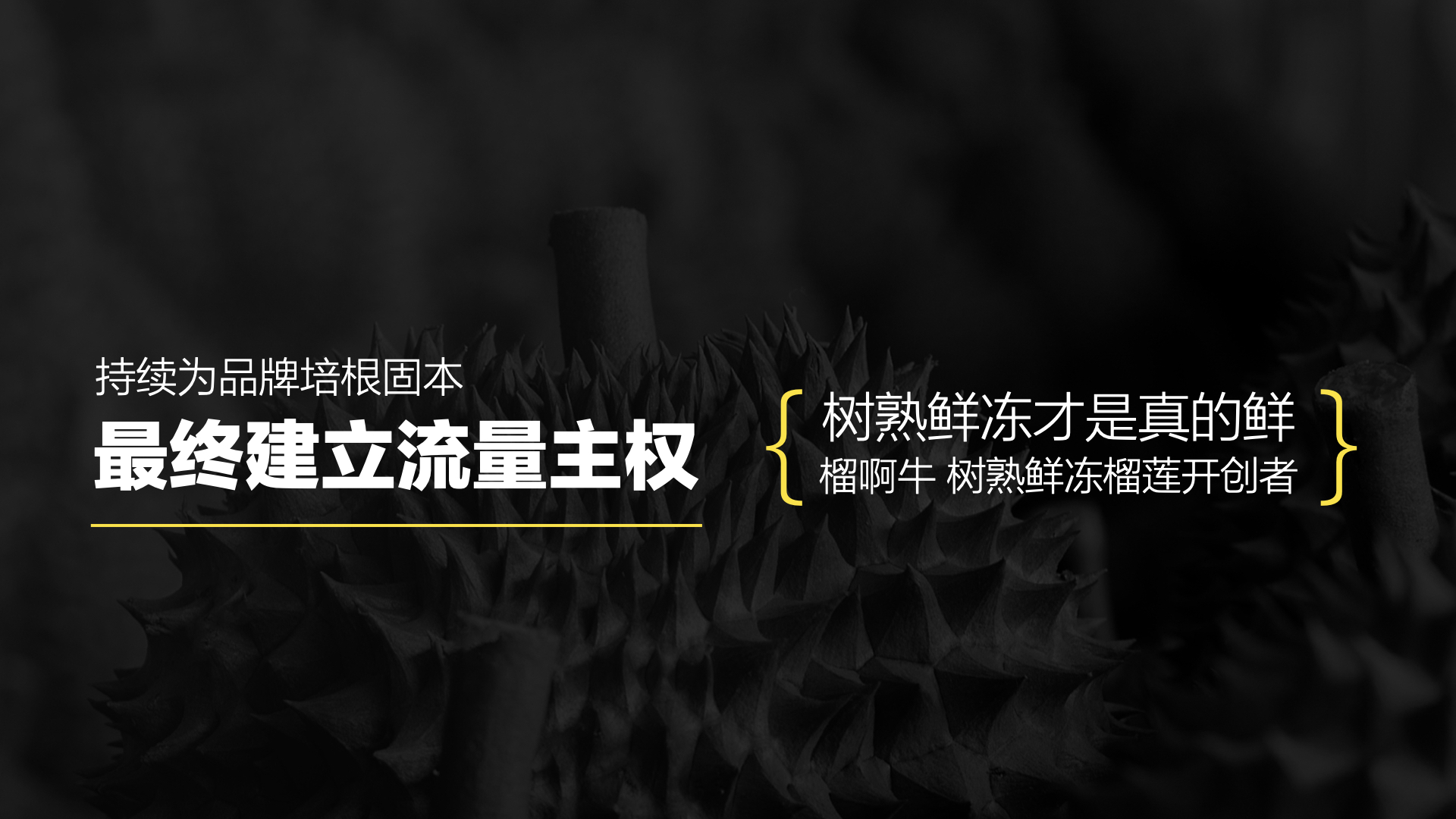 于是我们聚焦鲜果最大的优势“鲜”,紧扣冷冻榴莲行业特征“冻”,“鲜冻”是我们为榴啊牛定义的一个全新的品类。