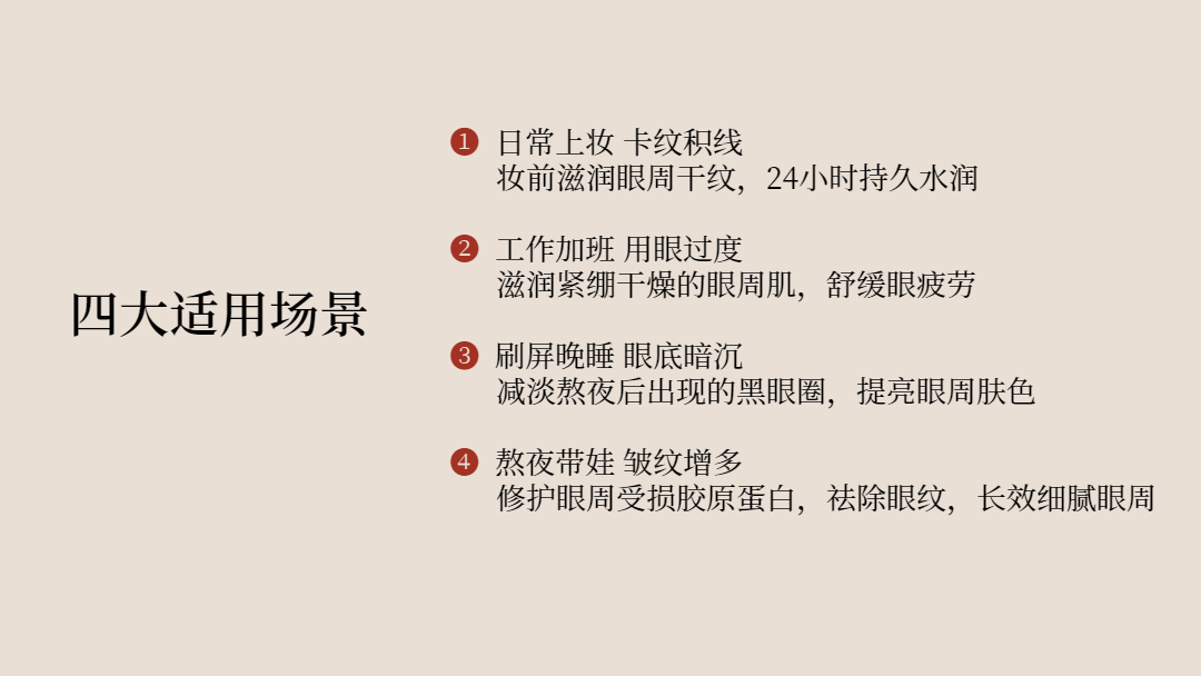 一、对于行业赛道:随着人们生活方式与作息的改变,大众对眼周肌肤护理需求逐渐增强,眼部抗皱市场体量大。